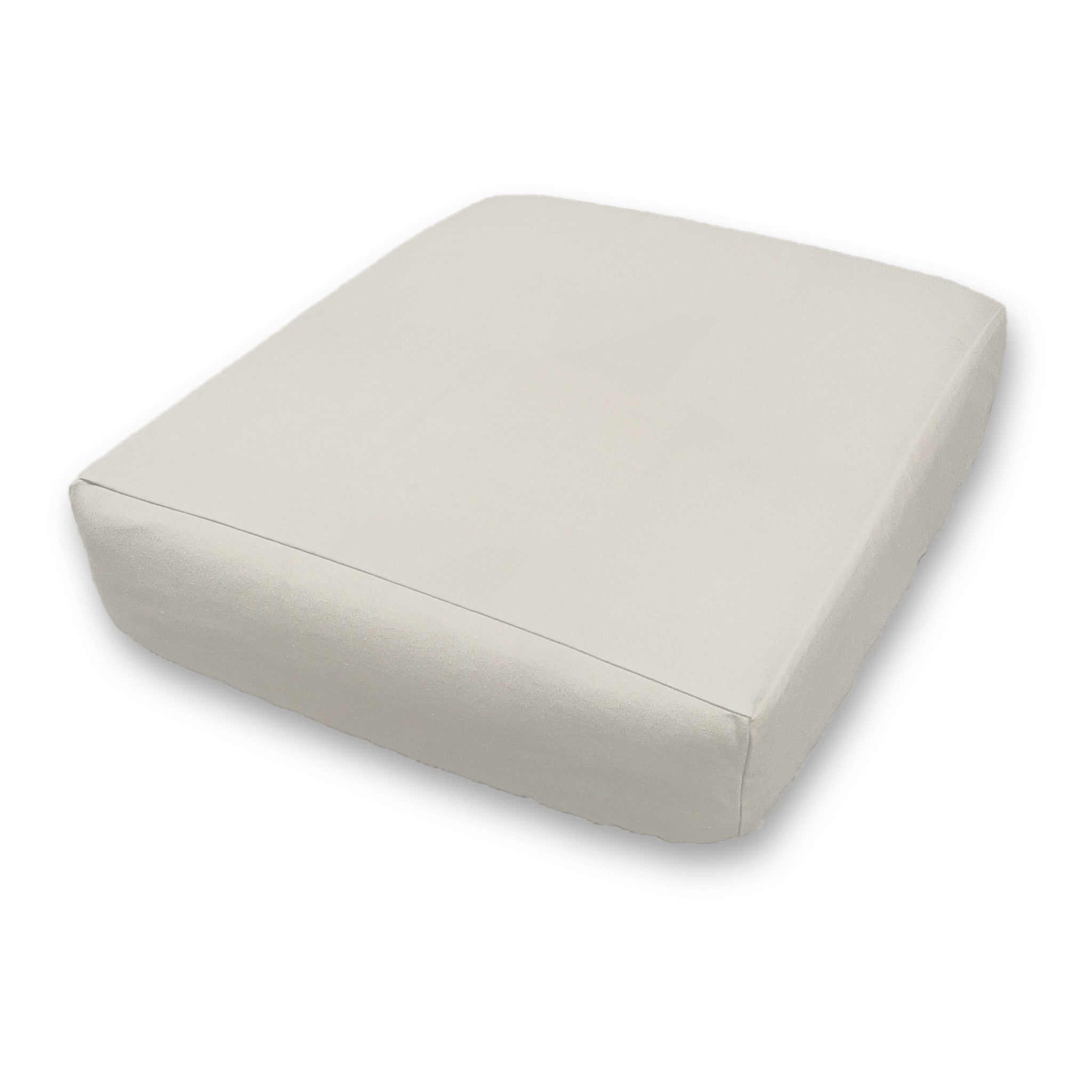 • We add on an extra 1.5 to 2 inches of fabric to wrap underneath the cushion. This ensures a nice tight fit.