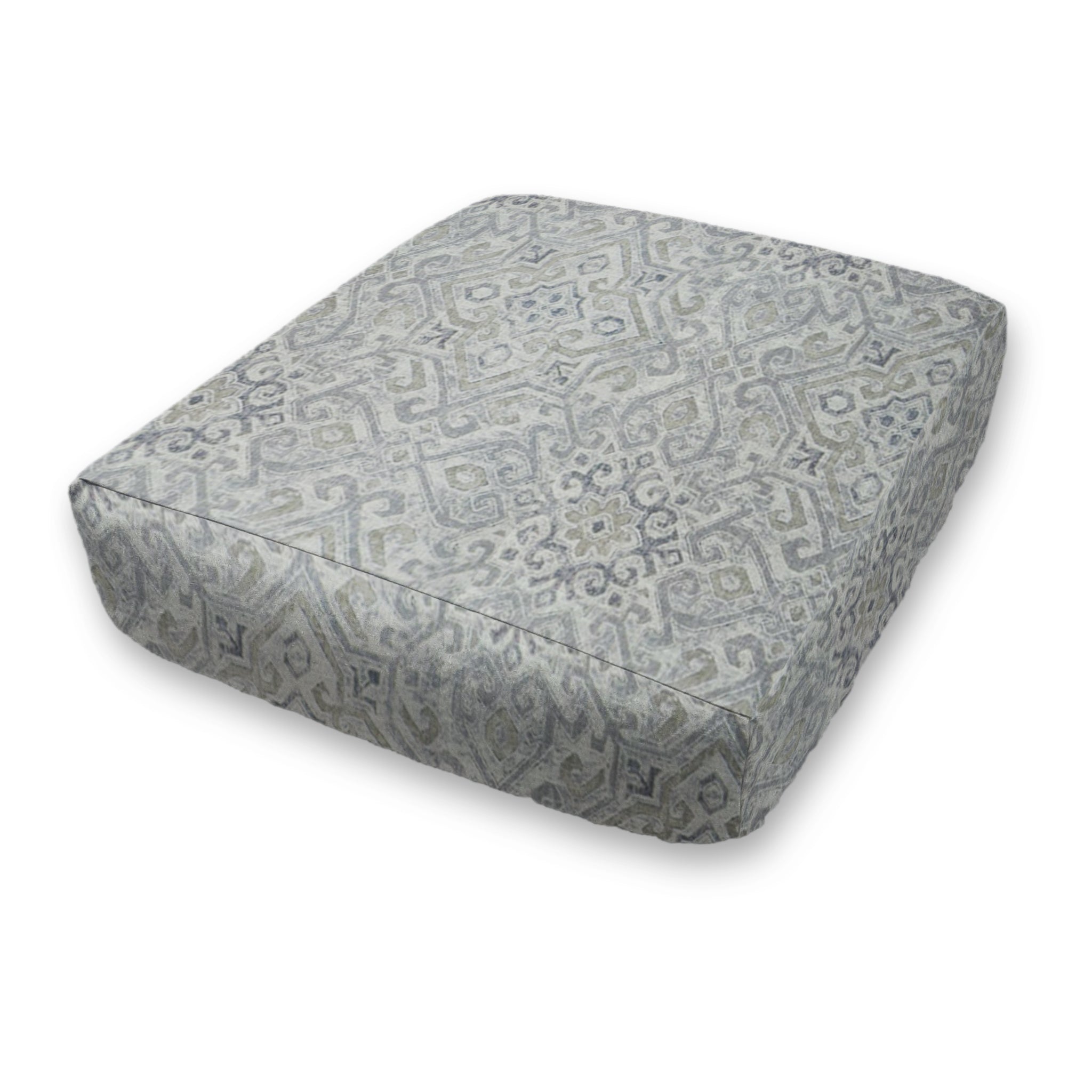 • We add on an extra 1.5 to 2 inches of fabric to wrap underneath the cushion. This ensures a nice tight fit.
