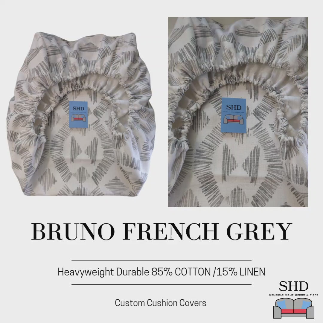 Bruno French Grey Cotton Slub Linen Custom Elastic Fitted Cushion Cover