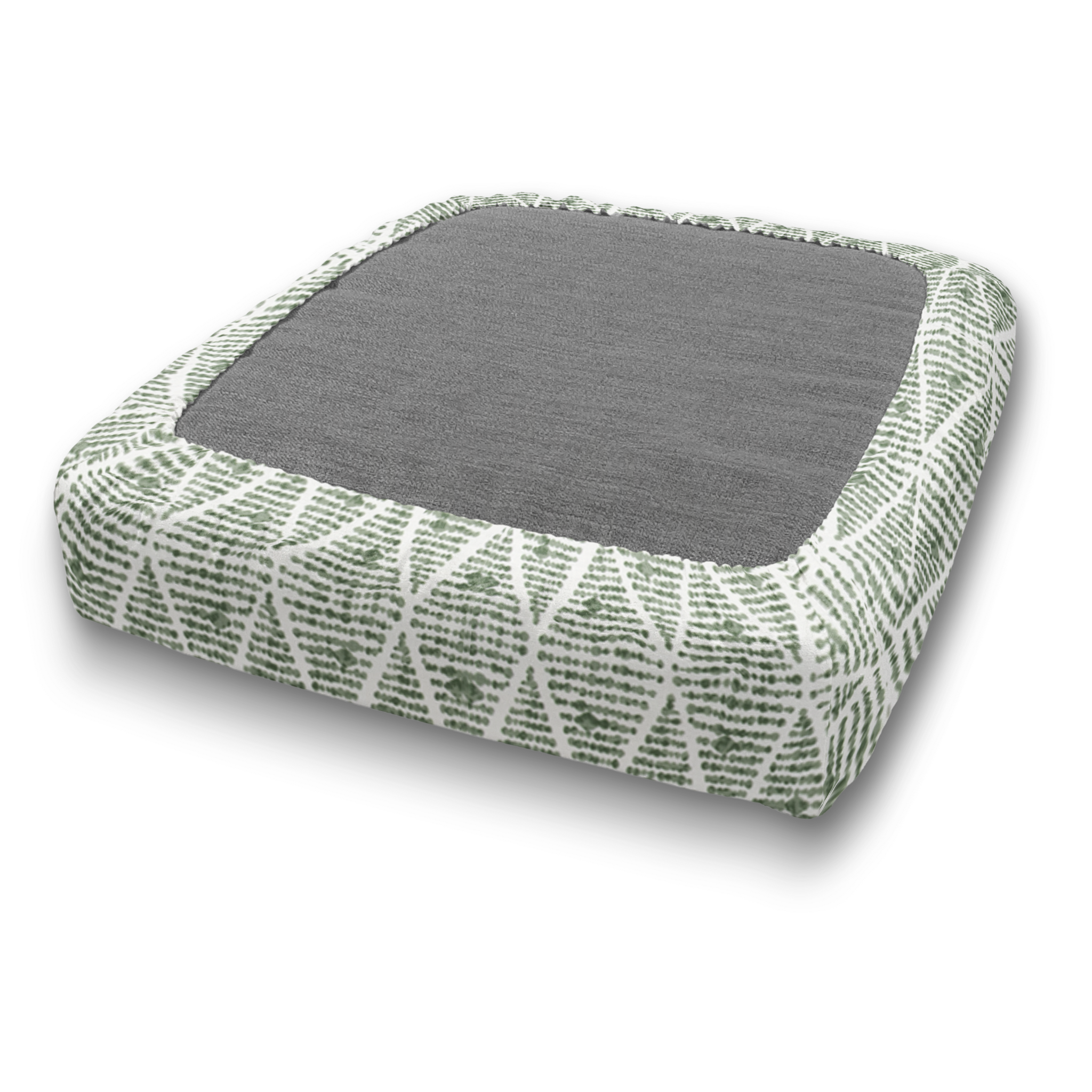 This stylish Foster Luxe Boho custom cushion cover provides a tranquil outdoor oasis to perfectly suit your preferences and desires. Our elastic fitted cushion covers are easy to slip on over your existing outdoor patio chair covers, outdoor chair cushions and sofa covers to create a quick and easy change in scenery.  Easy to remove, hand wash and/or store away.  Protective cushion covers for when you entertain during those special occasions and holidays without all the mess.  Protective against pets, dogs, children, and grandchildren when life gets messy.  Our cushion covers are exactly what you need to protect your furniture with the style you want.  Our new elastic cushion cover design provides a way to easily remove your covers without breaking a nail to store away for any season. Stop fighting with your cushions!